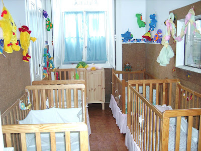 A Sala de actividades (0 a 1 ano) das crianças do berçário